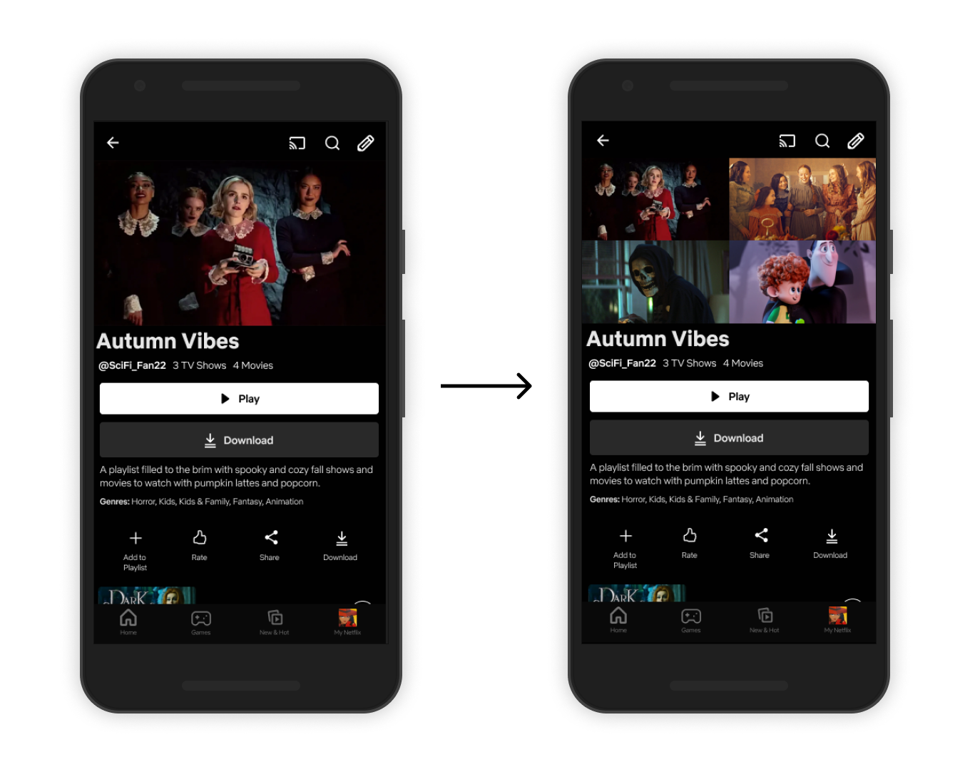 Solution: Taking inspiration once again from Spotify, playlists now have an image autopopulated with 4 pieces of content from their playlist.