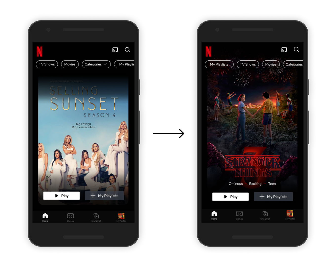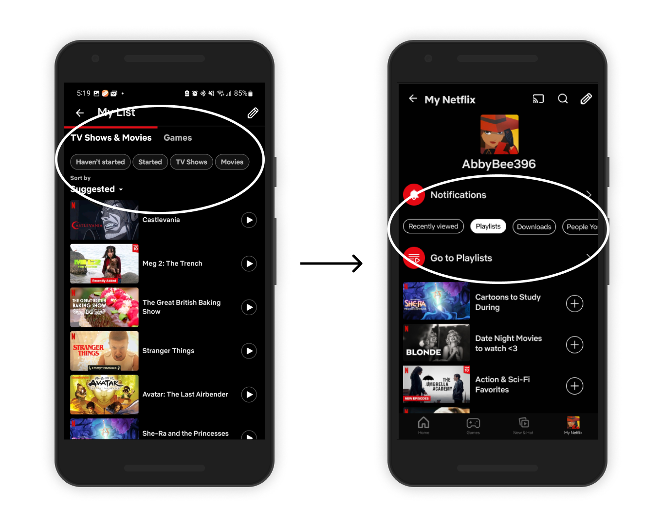 Solution: Users have to click ‘My Netflix’ to access their list on the Netflix app, but the next iteration will have a button on the homepage as well to access playlists.
