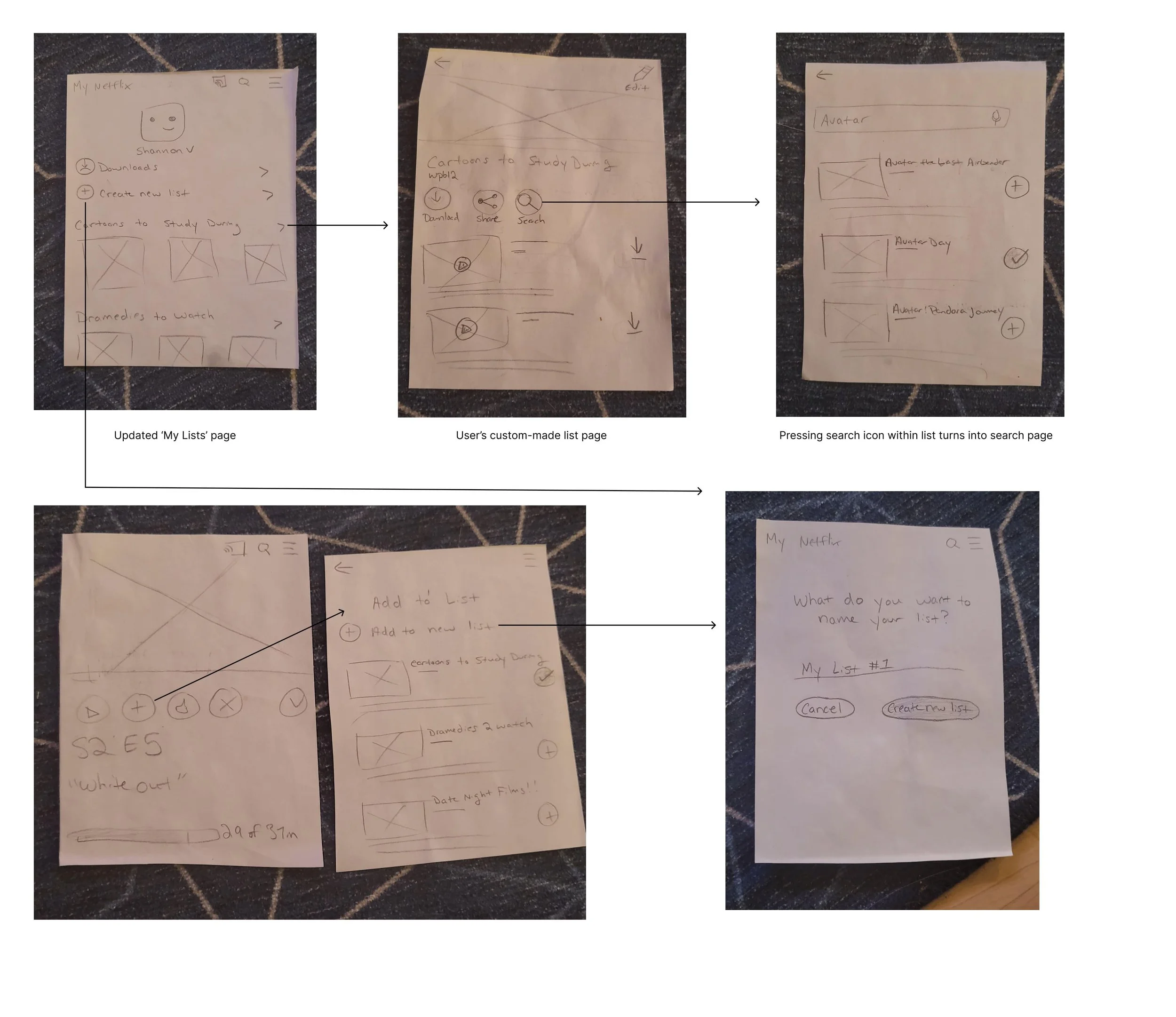 Before moving the designs to the digital space, 3 users completed moderated, remote testing of a paper prototype to determine if people could navigate adding content to a new or existing playlist and what they thought this feature was. There were a few apparent issues that needed to be addressed before the next iteration.