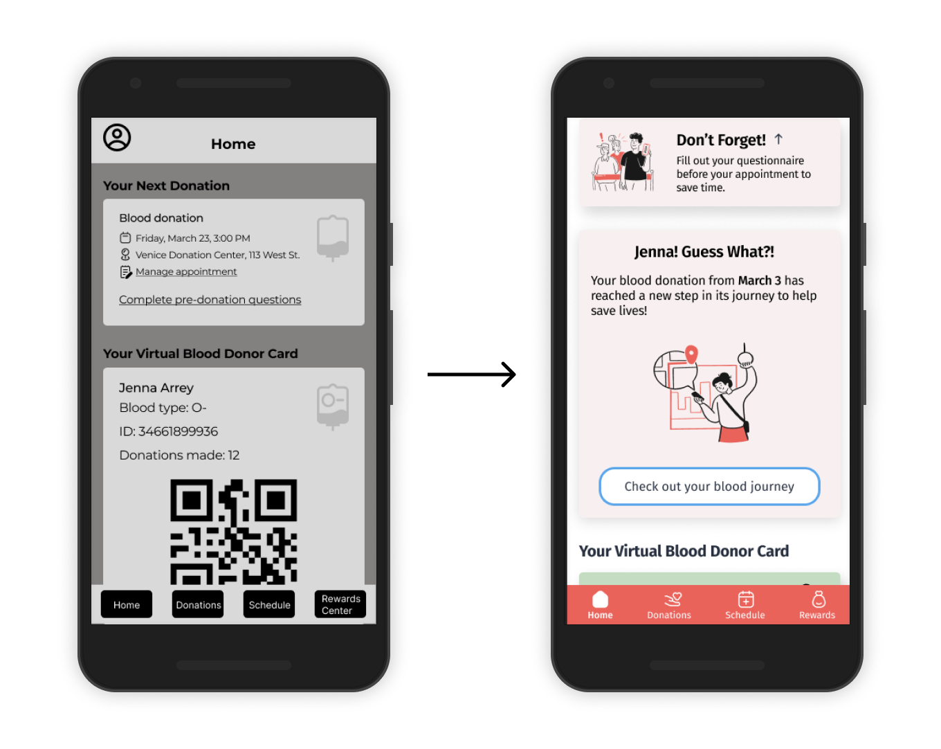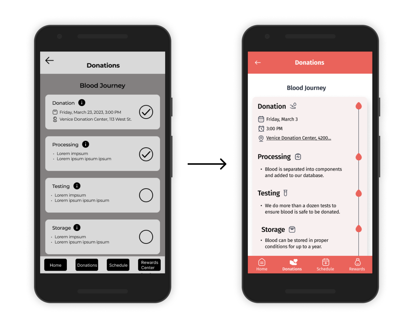 Problem: Users didn’t know that current/past blood journeys were under ‘donations.’