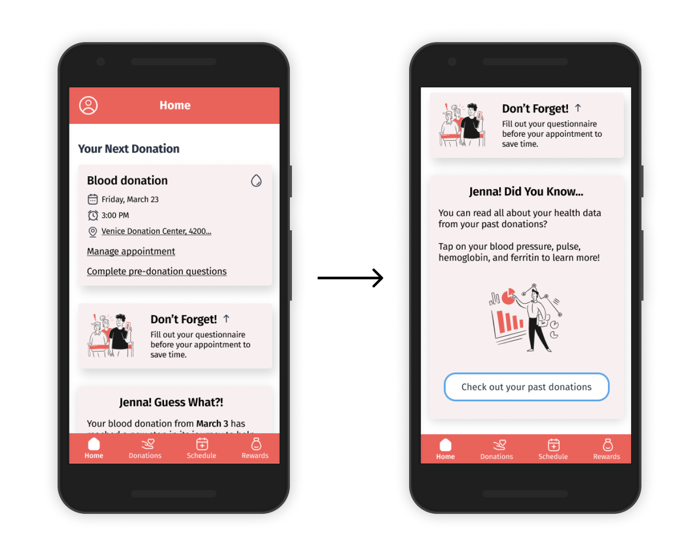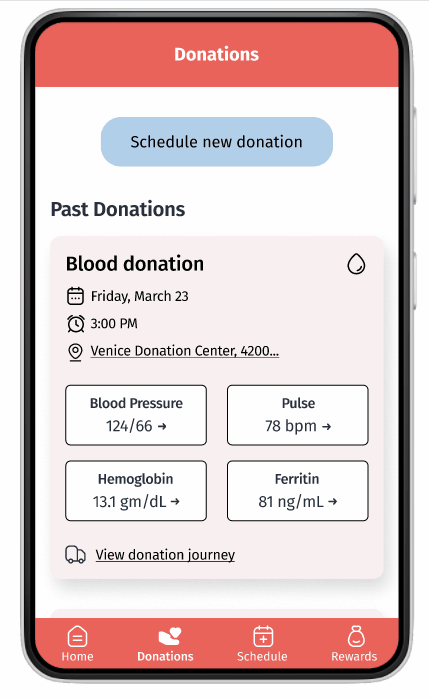 Problem: Users who were unfamiliar with blood donation apps weren’t certain where they could check their past health information.