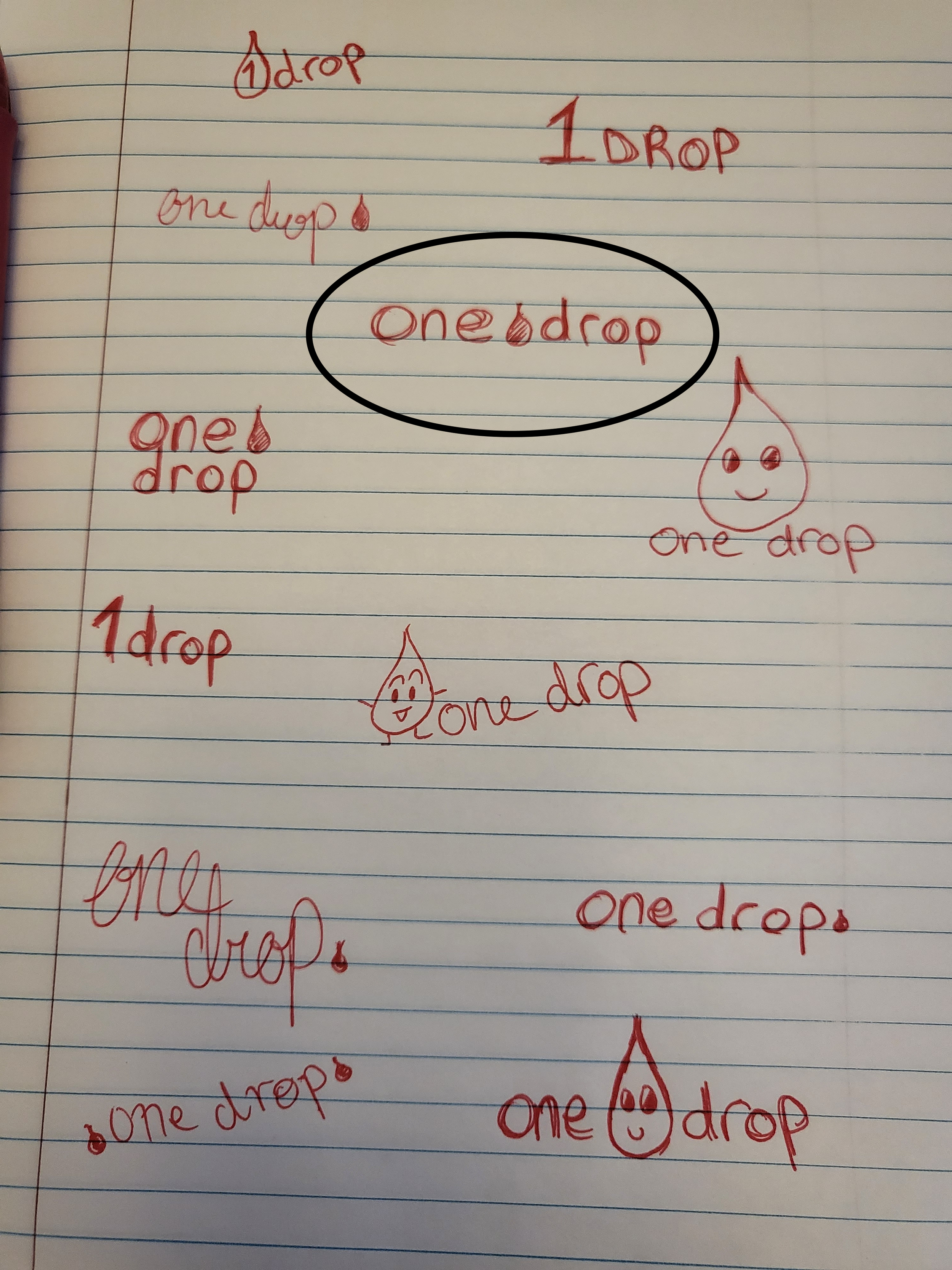 When sketching potential logo images, the idea of a little blood drop mascot was appealing, but 5 testers were recruited to choose their favorite logo and 3 out of 5 chose the circled logo.