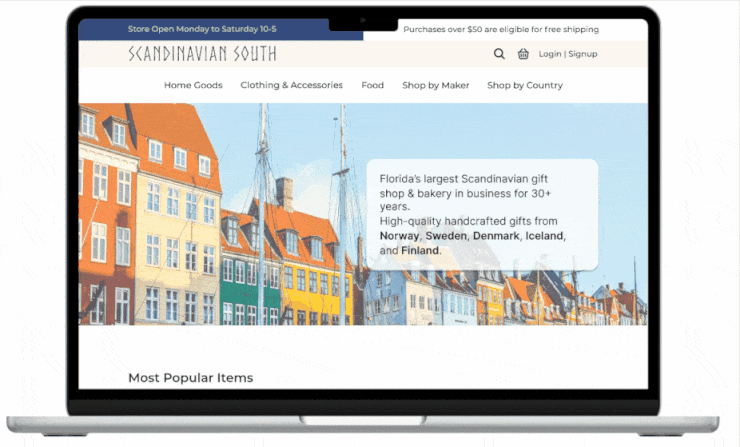 Locally owned businesses are a great asset to any community, but sometimes they don’t have the resources that major retailers do when it comes to creating a knockout site. Scandinavian South, a gift store and bakery in Sarasota, Florida, has been in business for more than 30 years and sells hundreds of authentic and charming items from Scandinavia. There shouldn’t be any problems then, right?