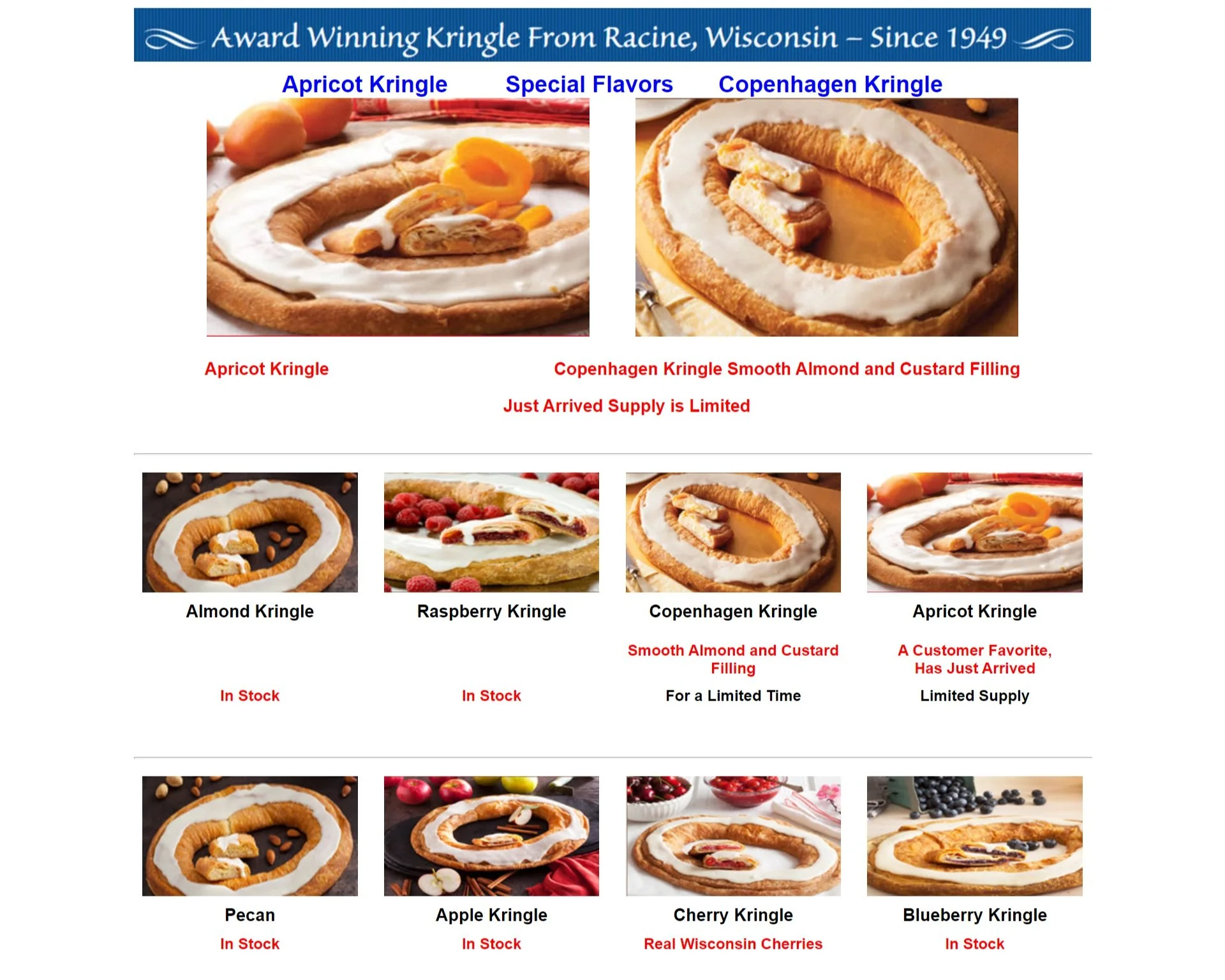 2 of the 5 interviewees who explored individual product pages said they were confused that products, such as the Hinza brand tote bag and Danish kringle, had each color and flavor listed as a separate product instead of a single item with a dropdown. These same two users also quickly noted that there wasn’t a way to order the kringles online.